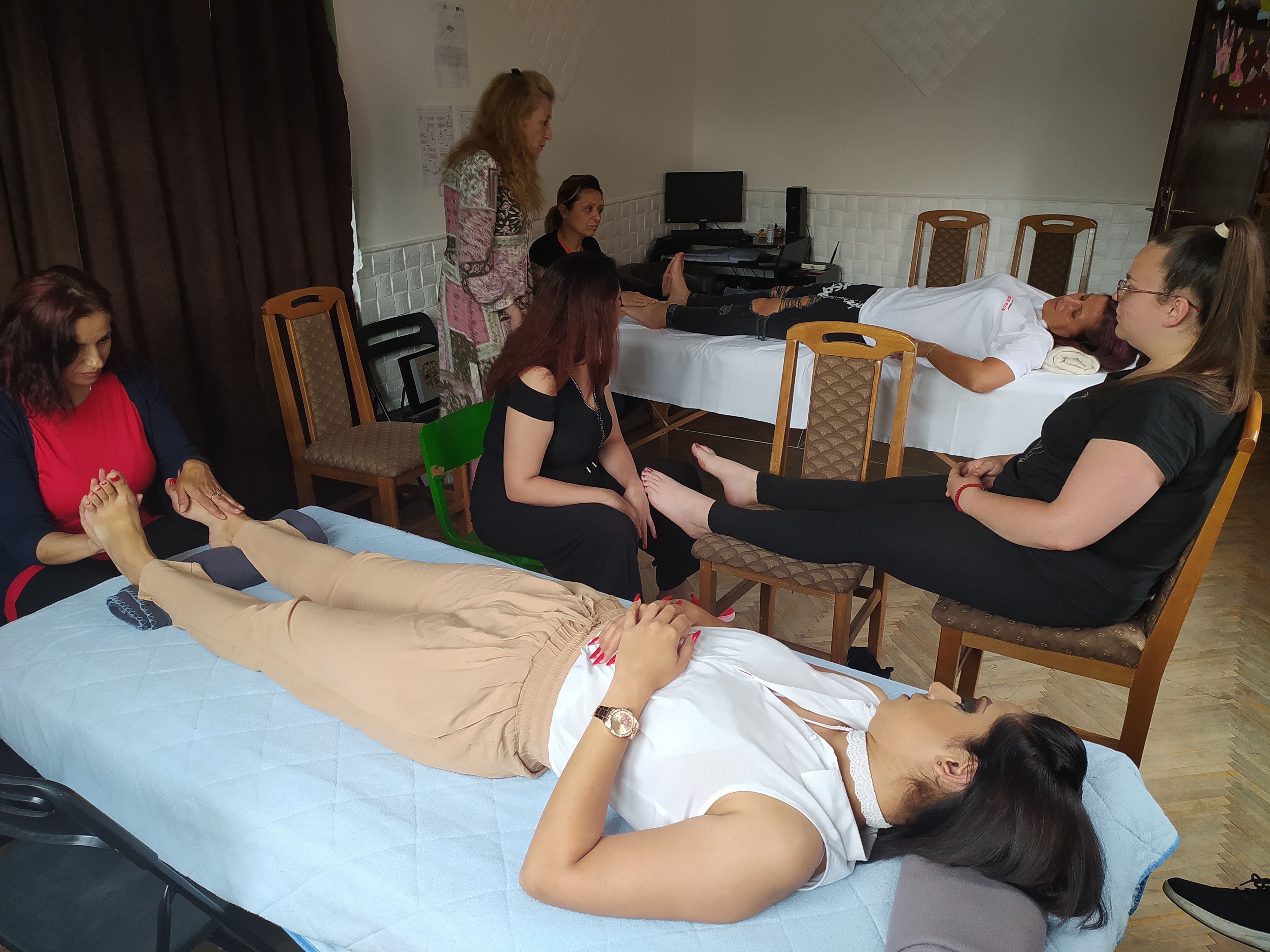 U okviru projekta „Ekonomsko osnaživanje ranjivih grupa žena kroz obuke za zanate“, koji ekonomski i savetodavno podržava GIZ (program PME), prethodna tri dana – 10, 11. i 12. juna 2022. su održane  obuke o refleksoterapiji stopala u Aleksincu, Vranju i Pirotu. Polaznice su, na ovaj način, imale priliku da uživo, uz prisustvo instruktorke Tatjane Jevđović (naša članica „Beauty Imagini“ iz Beograda), usavrše tehnike uvežbavane tokom maja, onlajn.